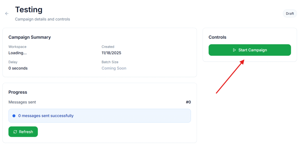 In this guide, you’ll learn how to create, save, and launch your first campaign, from naming it to running the campaign.